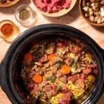 A comforting and reimagined classic beef stroganoff with tender beef, creamy sauce, and satisfying mushrooms.