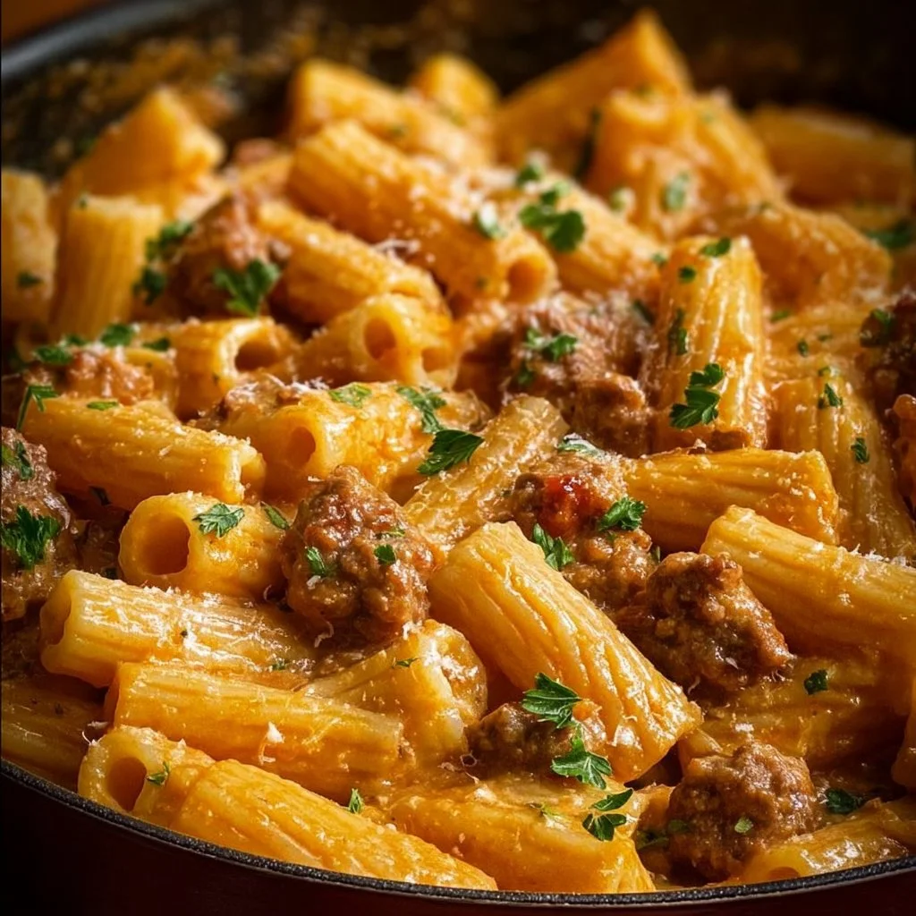 A creamy and comforting pasta dish featuring rigatoni, Italian sausage, and a rich sauce that feels like a cozy Italian dining experience.