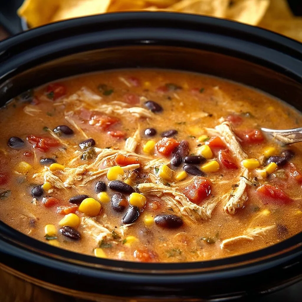 A cozy and soul-soothing crockpot soup filled with flavorful chicken, black beans, corn, and tomatoes, perfect for any season and easily customizable.