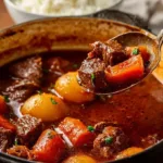 A flavorful Hawaiian-style beef stew inspired by island cuisine, featuring tender beef, vibrant vegetables, and a tropical twist with pineapple.