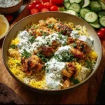 - Serve chicken alongside tzatziki rice and top with feta and fresh herbs if desired.