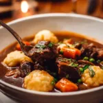 A hearty beef stew with fluffy dumplings, perfect for cozying up on chilly days.