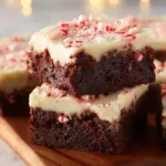 Delicious brownies topped with festive peppermint bark, perfect for holiday gatherings.