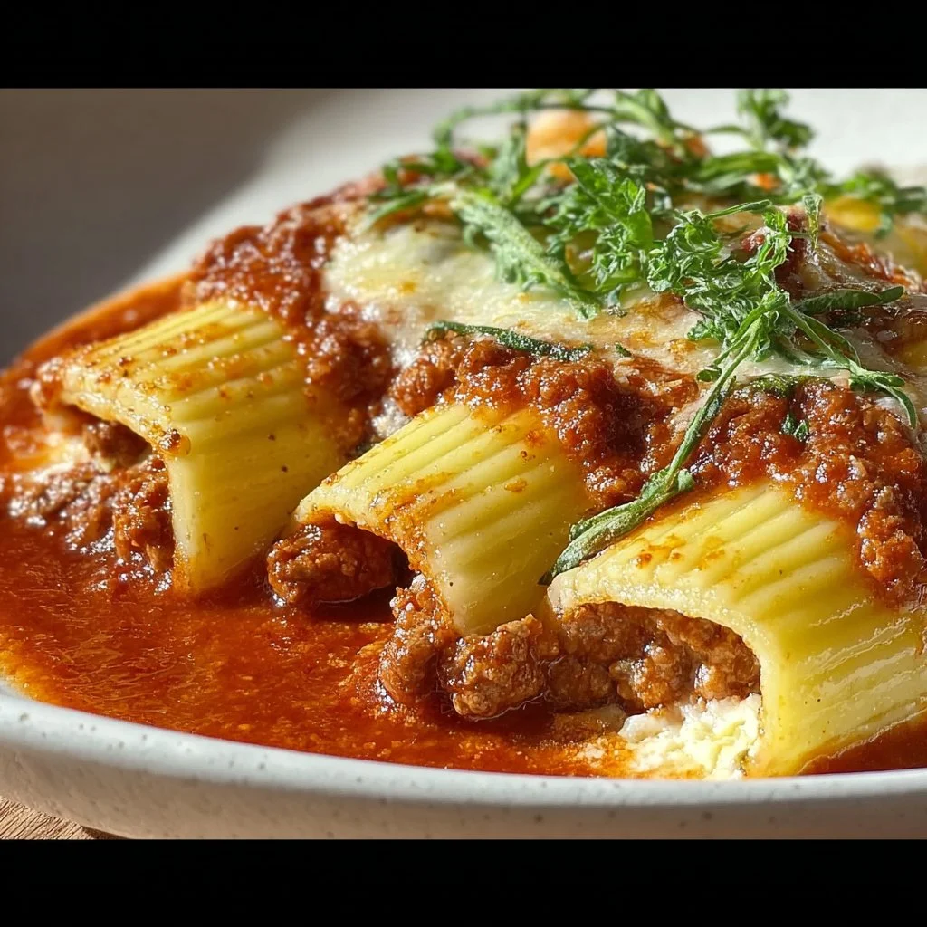 Savory Stuffed Manicotti with Flavor-Packed Meat Sauce