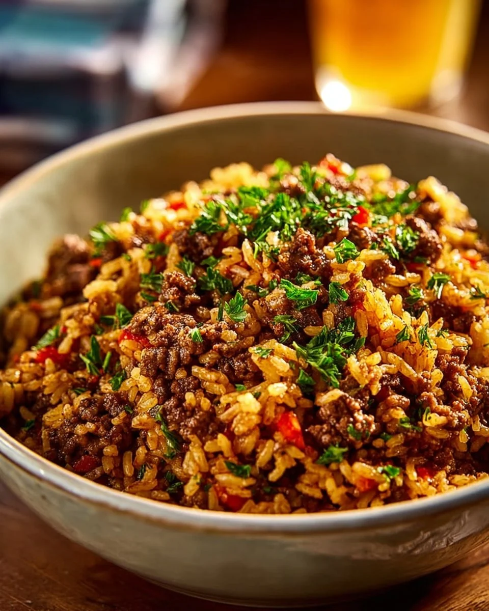 A flavorful Southern classic dish made with rice, ground meat, and a blend of spices, perfect for any occasion.