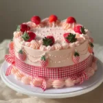 A delightful strawberry birthday cake that combines nostalgic flavors with vintage charm, perfect for any celebration.